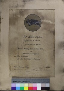 Appoinment certificate by Command of His Highness Reglar Begi The Khan of Kalat, Beluchistan to M/S N.C. DAW & Co. for supply fire arms, ammunition etc.