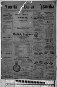 Publisher: Asutosh De. Editor: unknown. Physical characteristics and condition of original material: 50.5 cm / brittle; paper; old newsprint in poor condition. Old EAP reference: EAP262/1/1/1853.