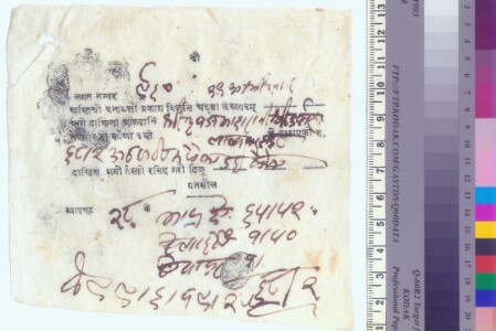 Extent of Original: Broadside containing single page. Medium of Original: Printed on paper of 13 cm x 13 cm. Description: This broadside consists of the vehicle tax bill taken by the Lalitpur Municipality office. Creator: Unknown.