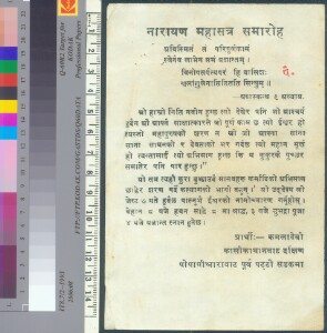 Extent of Original: Single side printed broadside. Medium of Original: Printed on paper of 20 cm x 13 cm. Description: This broadside contains an invitation issued from the name of Kaviprasāda Gautama to participate in a Hindu religious programme being held on the Teacher’s day. Creator: Kaviprasāda Gautama.