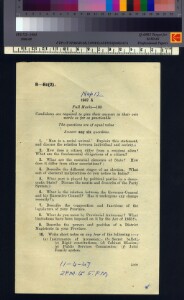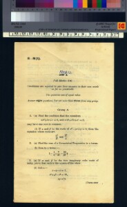 Extent of Original: Pamphlet containing four pages. Medium of Original: Printed on paper of 22 cm x 13 cm. Description: This pamphlet consists of the Mathematics question paper of a high school. Creator: Unknown.