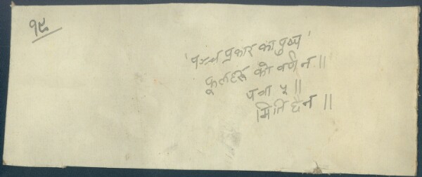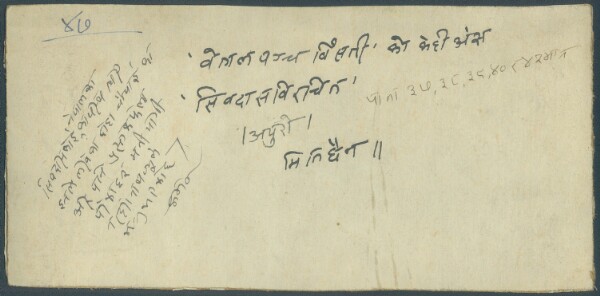 Extent of Original: Single volume containing 43 images. Medium of Original: Written on traditional Nepali paper of 11 cm x 25 cm. Description: Caausaṭhiliṃṅgako Nāu is the volume containing the descriptions of all the sixty four different pilgrimage sites of Lord Shiva. The volume contains the name of the temple, location and date to visit the particular temple. Creator: Unknown.