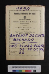 Documentos referentes ao inventariante Severino da Costa Oliveira, 1877. Documents regarding the inventory of goods of Severino da Costa Oliveira, 1877. Custodial history: Document produced in extrajudicial Public Notary and at the Court of Orphans and the Abandoned, County of São João do Cariri. Extent and format of original material: 1 manuscript proceeding with X folios, plus cover. Owner(s) of original material: Fórum Nivaldo Farias Brito.