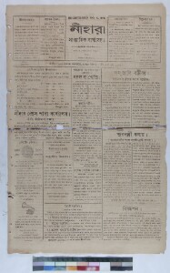 A weekly journal, “Nihar”, used to be published from Knathi, Midnapore in West Bengal, India. It contains writings on the National Movement. It was a special example of regional newspapers and how they have seen our national movement. Not only national movements or issues, this journal has been created a landmark of continuity. Custodial history: Nihar belonged to the Nihar Press established by Madhusudan Jana and at present his grandson Mr. Nitindranath Jana is the sole owner of the newspaper. The newspapers are located in the ancestral house of Nitindranath Jana from where Nihar used to run till 1989. Administrative context: The CSSSC, on realising the importance of copying the collection applied for a grant to the EAP against which EAP921 has been awarded. Calendar: Common Calendar. Extent and format of original material: Weekly printed news paper. Physical characteristics: Brittle, old newsprint in poor condition. The original volume with length of 35 cm. Volume and issue number: Vol.-4; Issue-36. Owner(s) of original material: Mr. Nitindranath Jana. Publisher of original material: Midnapur: M. S. Jana, Nihar Press. Editor of original material: Madhusudan Jana.
