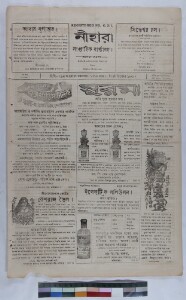 A weekly journal, “Nihar”, used to be published from Knathi, Midnapore in West Bengal, India. It contains writings on the National Movement. It was a special example of regional newspapers and how they have seen our national movement. Not only national movements or issues, this journal has been created a landmark of continuity. Custodial history: Nihar belonged to the Nihar Press established by Madhusudan Jana and at present his grandson Mr. Nitindranath Jana is the sole owner of the newspaper. The newspapers are located in the ancestral house of Nitindranath Jana from where Nihar used to run till 1989. Administrative context: The CSSSC, on realising the importance of copying the collection applied for a grant to the EAP against which EAP921 has been awarded. Calendar: Common Calendar. Extent and format of original material: Weekly printed news paper. Physical characteristics: Brittle, old newsprint in poor condition. The original volume with length of 35 cm. Volume and issue number: Vol.-9; Issue-4. Owner(s) of original material: Mr. Nitindranath Jana. Publisher of original material: Midnapur: M. S. Jana, Nihar Press. Editor of original material: Madhusudan Jana.
