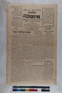 A weekly journal, “Nihar”, used to be published from Knathi, Midnapore in West Bengal, India. It contains writings on the National Movement. It was a special example of regional newspapers and how they have seen our national movement. Not only national movements or issues, this journal has been created a landmark of continuity. Custodial history: Nihar belonged to the Nihar Press established by Madhusudan Jana and at present his grandson Mr. Nitindranath Jana is the sole owner of the newspaper. The newspapers are located in the ancestral house of Nitindranath Jana from where Nihar used to run till 1989. Administrative context: The CSSSC, on realising the importance of copying the collection applied for a grant to the EAP against which EAP921 has been awarded. Calendar: Common Calendar. Extent and format of original material: Weekly printed news paper. Physical characteristics: Brittle, old newsprint in poor condition. The original volume with length of 35 cm. Volume and issue number: Vol.-80; Issue-10. Owner(s) of original material: Mr. Nitindranath Jana. Publisher of original material: Midnapur: J. N. Jana, Nihar Press. Editor of original material: Jatindranath Jana.