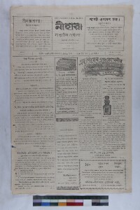 A weekly journal, “Nihar”, used to be published from Knathi, Midnapore in West Bengal, India. It contains writings on the National Movement. It was a special example of regional newspapers and how they have seen our national movement. Not only national movements or issues, this journal has been created a landmark of continuity. Custodial history: Nihar belonged to the Nihar Press established by Madhusudan Jana and at present his grandson Mr. Nitindranath Jana is the sole owner of the newspaper. The newspapers are located in the ancestral house of Nitindranath Jana from where Nihar used to run till 1989. Administrative context: The CSSSC, on realising the importance of copying the collection applied for a grant to the EAP against which EAP921 has been awarded. Calendar: Common Calendar. Extent and format of original material: Weekly printed news paper. Physical characteristics: Brittle, old newsprint in poor condition. The original volume with length of 35 cm. Volume and issue number: Vol.-12; Issue-1. Owner(s) of original material: Mr. Nitindranath Jana. Publisher of original material: Midnapur: M. S. Jana, Nihar Press. Editor of original material: Madhusudan Jana.