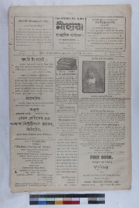 A weekly journal, “Nihar”, used to be published from Knathi, Midnapore in West Bengal, India. It contains writings on the National Movement. It was a special example of regional newspapers and how they have seen our national movement. Not only national movements or issues, this journal has been created a landmark of continuity. Custodial history: Nihar belonged to the Nihar Press established by Madhusudan Jana and at present his grandson Mr. Nitindranath Jana is the sole owner of the newspaper. The newspapers are located in the ancestral house of Nitindranath Jana from where Nihar used to run till 1989. Administrative context: The CSSSC, on realising the importance of copying the collection applied for a grant to the EAP against which EAP921 has been awarded. Calendar: Common Calendar. Extent and format of original material: Weekly printed news paper. Physical characteristics: Brittle, old newsprint in poor condition. The original volume with length of 35 cm. Volume and issue number: Vol.-12; Issue-27. Owner(s) of original material: Mr. Nitindranath Jana. Publisher of original material: Midnapur: M. S. Jana, Nihar Press. Editor of original material: Madhusudan Jana.