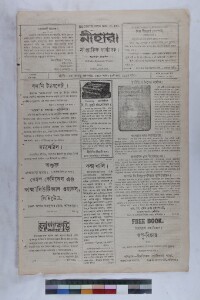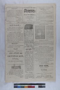 A weekly journal, “Nihar”, used to be published from Knathi, Midnapore in West Bengal, India. It contains writings on the National Movement. It was a special example of regional newspapers and how they have seen our national movement. Not only national movements or issues, this journal has been created a landmark of continuity. Custodial history: Nihar belonged to the Nihar Press established by Madhusudan Jana and at present his grandson Mr. Nitindranath Jana is the sole owner of the newspaper. The newspapers are located in the ancestral house of Nitindranath Jana from where Nihar used to run till 1989. Administrative context: The CSSSC, on realising the importance of copying the collection applied for a grant to the EAP against which EAP921 has been awarded. Calendar: Common Calendar. Extent and format of original material: Weekly printed news paper. Physical characteristics: Brittle, old newsprint in poor condition. The original volume with length of 35 cm. Volume and issue number: Vol.-12; Issue-43. Owner(s) of original material: Mr. Nitindranath Jana. Publisher of original material: Midnapur: M. S. Jana, Nihar Press. Editor of original material: Madhusudan Jana.