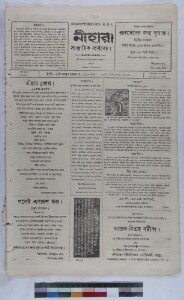 A weekly journal, “Nihar”, used to be published from Knathi, Midnapore in West Bengal, India. It contains writings on the National Movement. It was a special example of regional newspapers and how they have seen our national movement. Not only national movements or issues, this journal has been created a landmark of continuity. Custodial history: Nihar belonged to the Nihar Press established by Madhusudan Jana and at present his grandson Mr. Nitindranath Jana is the sole owner of the newspaper. The newspapers are located in the ancestral house of Nitindranath Jana from where Nihar used to run till 1989. Administrative context: The CSSSC, on realising the importance of copying the collection applied for a grant to the EAP against which EAP921 has been awarded. Calendar: Common Calendar. Extent and format of original material: Weekly printed news paper. Physical characteristics: Brittle, old newsprint in poor condition. The original volume with length of 35 cm. Volume and issue number: Vol.-13; Issue-24. Owner(s) of original material: Mr. Nitindranath Jana. Publisher of original material: Midnapur: M. S. Jana, Nihar Press. Editor of original material: Madhusudan Jana.