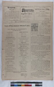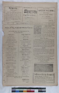 A weekly journal, “Nihar”, used to be published from Knathi, Midnapore in West Bengal, India. It contains writings on the National Movement. It was a special example of regional newspapers and how they have seen our national movement. Not only national movements or issues, this journal has been created a landmark of continuity. Custodial history: Nihar belonged to the Nihar Press established by Madhusudan Jana and at present his grandson Mr. Nitindranath Jana is the sole owner of the newspaper. The newspapers are located in the ancestral house of Nitindranath Jana from where Nihar used to run till 1989. Administrative context: The CSSSC, on realising the importance of copying the collection applied for a grant to the EAP against which EAP921 has been awarded. Calendar: Common Calendar. Extent and format of original material: Weekly printed news paper. Physical characteristics: Brittle, old newsprint in poor condition. The original volume with length of 35 cm. Volume and issue number: Vol.-14; Issue-13. Owner(s) of original material: Mr. Nitindranath Jana. Publisher of original material: Midnapur: M. S. Jana, Nihar Press. Editor of original material: Madhusudan Jana.