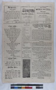 A weekly journal, “Nihar”, used to be published from Knathi, Midnapore in West Bengal, India. It contains writings on the National Movement. It was a special example of regional newspapers and how they have seen our national movement. Not only national movements or issues, this journal has been created a landmark of continuity. Custodial history: Nihar belonged to the Nihar Press established by Madhusudan Jana and at present his grandson Mr. Nitindranath Jana is the sole owner of the newspaper. The newspapers are located in the ancestral house of Nitindranath Jana from where Nihar used to run till 1989. Administrative context: The CSSSC, on realising the importance of copying the collection applied for a grant to the EAP against which EAP921 has been awarded. Calendar: Common Calendar. Extent and format of original material: Weekly printed news paper. Physical characteristics: Brittle, old newsprint in poor condition. The original volume with length of 35 cm. Volume and issue number: Vol.-14; Issue-29. Owner(s) of original material: Mr. Nitindranath Jana. Publisher of original material: Midnapur: M. S. Jana, Nihar Press. Editor of original material: Madhusudan Jana.