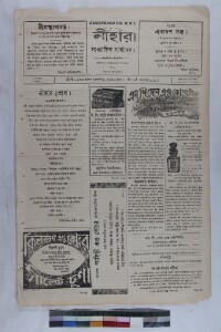 A weekly journal, “Nihar”, used to be published from Knathi, Midnapore in West Bengal, India. It contains writings on the National Movement. It was a special example of regional newspapers and how they have seen our national movement. Not only national movements or issues, this journal has been created a landmark of continuity. Custodial history: Nihar belonged to the Nihar Press established by Madhusudan Jana and at present his grandson Mr. Nitindranath Jana is the sole owner of the newspaper. The newspapers are located in the ancestral house of Nitindranath Jana from where Nihar used to run till 1989. Administrative context: The CSSSC, on realising the importance of copying the collection applied for a grant to the EAP against which EAP921 has been awarded. Calendar: Common Calendar. Extent and format of original material: Weekly printed news paper. Physical characteristics: Brittle, old newsprint in poor condition. The original volume with length of 35 cm. Volume and issue number: Vol.-14; Issue-52. Owner(s) of original material: Mr. Nitindranath Jana. Publisher of original material: Midnapur: M. S. Jana, Nihar Press. Editor of original material: Madhusudan Jana.