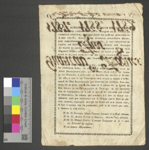 Invitación a dar limosnas con el objeto de recaudar fondos a fin de construir un retablo para el culto de Jesús Sacramentado. Antigua signatura A3.