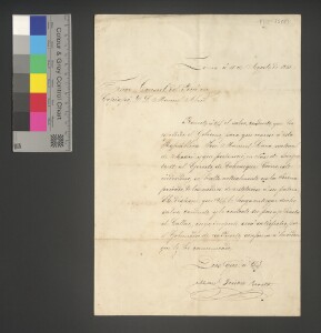 Letter from the Ministry of Foreign Affairs in Copiapó to the Peruvian Consul sending safe-conduct passes for José Manuel Lara.