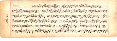 Description: This is a prayer text on the lineage of lamas for Purwa tantra. Type: Manuscript; Black and red ink. Dbu can Tibetan script. Size and…