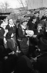 Description: the ritual wedding bread is broken into pieces, Hlevene, Lovech disitrict (Central Bulgaria). Date(s): c 1957. Creator(s): Pesheva.…