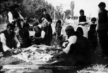 Description: boiling of sacrifice meat in Bansko (Southern Bulgaria), from the Old photo-archive of NEM. Date(s): Early 20th century. Creator(s):…