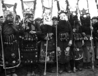Description: mummers from Kirilovo village, Elhovo district (Southern Bulgaria), from the Old photo-archive of NEM. Date(s): Early 20th century.…