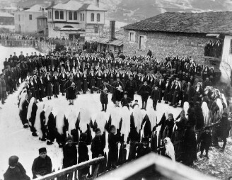 Description: a traditional dance (horo), Chepelare, Smolian district (Southern Bulgaria). Date(s): Early 20th century. Creator(s): Unknown.…
