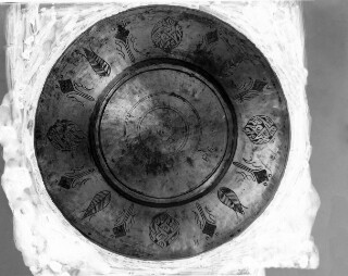Description: a copper bowl (sahan), EIM. Date(s): Early 20th century. Creator(s): Unknown. Dimensions: 9 cm x 12 cm. Copy process: photo treatment…