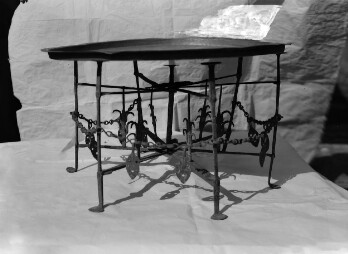 Description: a copper low round table (siniia), EIM. Date(s): Early 20th century. Creator(s): Unknown. Dimensions: 9 cm x 12 cm. Copy process:…