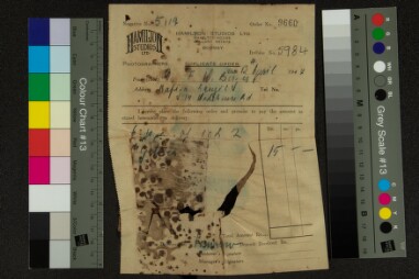 One print and one invoice for Mr. R. J. Kirohhoper, C/o Calfix, Bombay. Extent: 1 print and 1 invoice. Custodial history: Owned by Hamilton Studios…