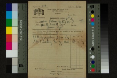 One print and one invoice for Major R. V. Russell at Argentina hotel, Bombay. Extent: 1 print and 1 invoie. Custodial history: Owned by Hamilton…