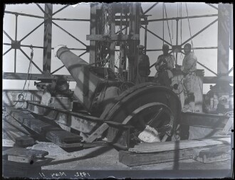 Three steam wagons carting the 60-inch telescope parts, 1930 June