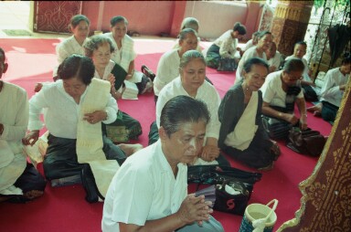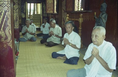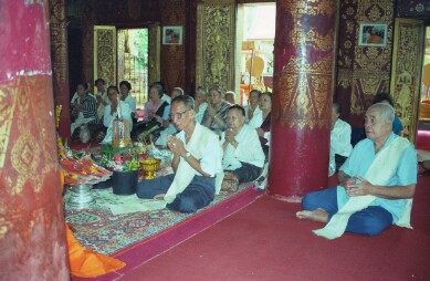 A memorial of Ouposot (observing of 227 precepts), this ceremony organized in Vat Saen Sukharam, Luang Prabang probably taken the 1960s. Head by…