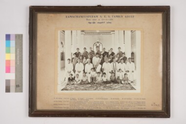 Indoor portrait. Full length shot.Group portrait. It is written on the top of the mount "Ramachandrapuram S.T.S. Family Group. Photo taken on…