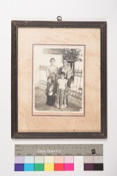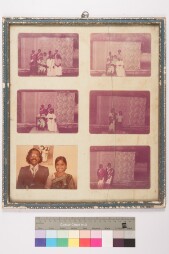 Glass broken. Colour print. Photo montage, 6 images pasted on the same mount. All the 5 images are studio family portrait, full-length shot and the…