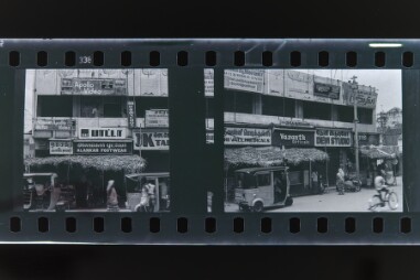 Outdoor portrait. There are 2 images in the 35mm roll. The images are of the roadside of the city having many shops and vehicles on the road.…
