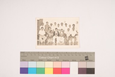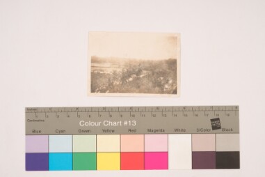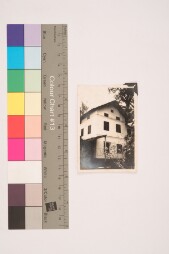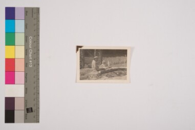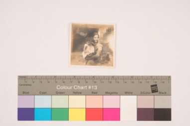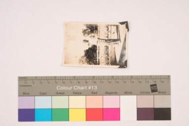 Indoor portrait. Portrait of the backside of the previous image that has a signature with date.