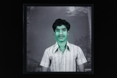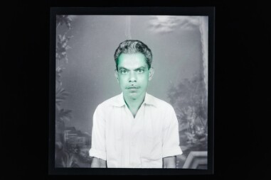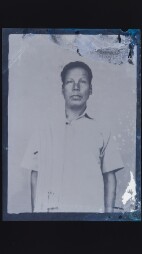 Deteriorated. Solo portrait of a man wearing shirt and towel(tundu). Standing straight looking at the camera.Extent and format of original material…