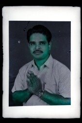 Deteriorated. Overexposed. Solo portrait of a boy standing wearing shirt and veshti.Extent and format of original material: Film black and white…