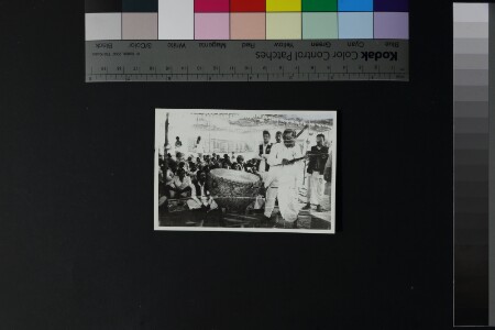A musician playing the Nagara as percussive accompaniment to the acrobatic performance. Custodial history: Collection of Komal Kothari, housed at Rupayan Sansthan. Extent and format of original material: 1 photograph. Physical characteristics: Black and white photograph. Glossy print. Owner(s) of original material: Rupayan Sansthan (Jodhpur District, Rajasthan State).