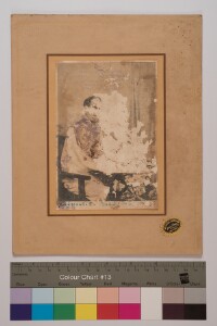 Deteriorated print. Person's name "Tamilnavalar.C.Arasapannar" is written below on the photograph. The Studio name "Mathikudi Anandhar Photo studio, Woriur.P.O.Tiruchirapalli" is printed on the left side below the mount.