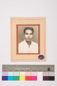 Studio solo portrait, bust shot image of a man wearing shirt, facing the camera. Plain background. Sudha Studio, Coonoor is printed on the mount.