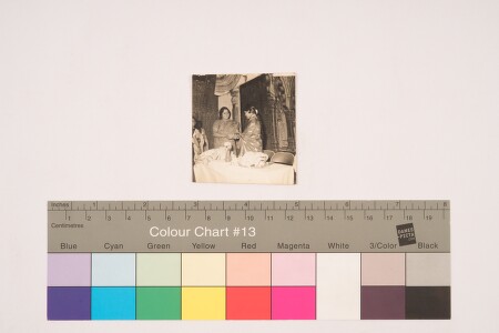 Indoor portrait. Event shot. A lady is giving a memento to the lady standing opposite to her.