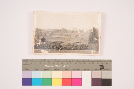Outdoor portrait. Biological deterioration. Portrait of a landscape having houses and fields.