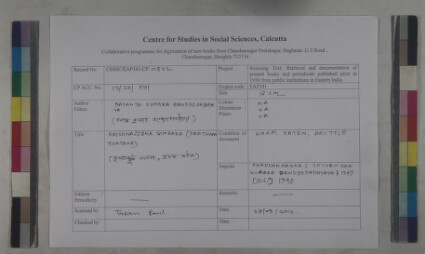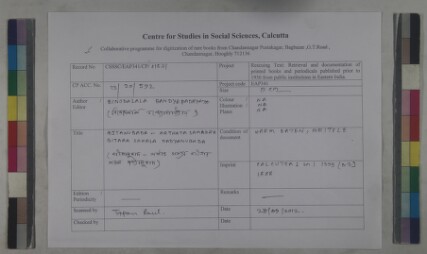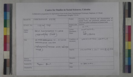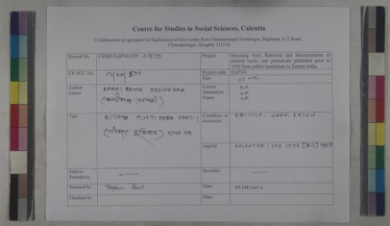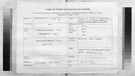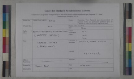 Archival records from Rescuing text: retrieval and documentation of printed books and periodicals from public institutions in eastern India published prior to 1950 - major project (EAP341)