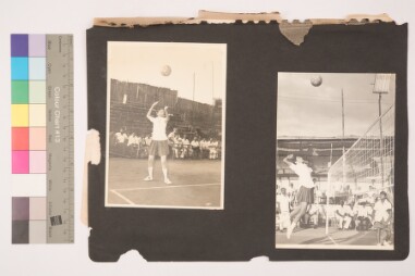 Outdoor portrait. Sports event. There are 2 portraits of girls playing volleyball.