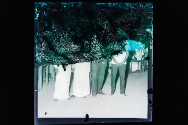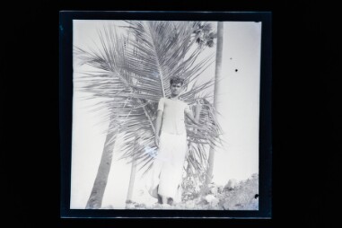 Deteriorated. Outdoor portrait. Full length shot. Solo portrait of a man standing holding the branch of palm tree.Extent and format of original…