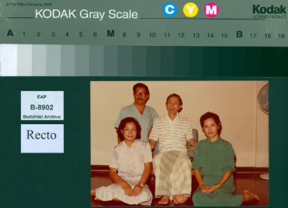 Pha Khamchan Virachitta Maha Thela, Abbot of Vat Saen Sukharam posing for a portrait at the home of Lao lay people during a travel to Federal Republic of Germany in 1987. Chromogenic print.