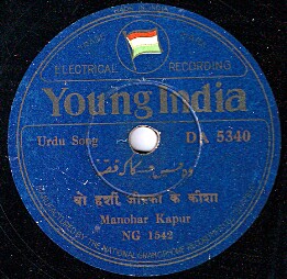 Language and/or genre of recording: Hindi Song from the film, Rai Saheb (Janak Pictures)