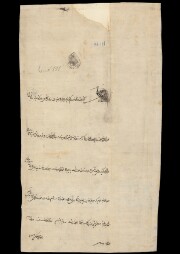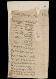 A note of payment by agha Babalu (6 tumans and 8 000 dinars). The deed has 3 seals.Extent: 1 folio.Size and dimensions of original material: height…