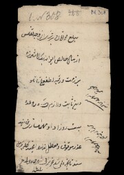 A letter-report by Abul-Qasim to Mirzaie Mirza Ali Naq on Condition of sarkar’s cattle. The deed has 1 seal.Extent: 1 fplio.Size and dimensions of…