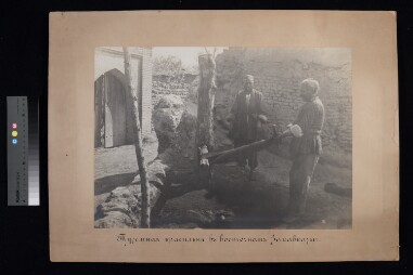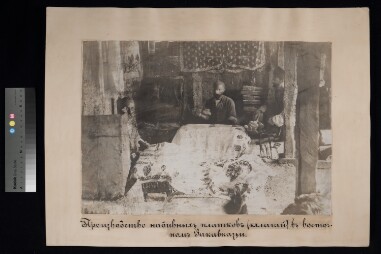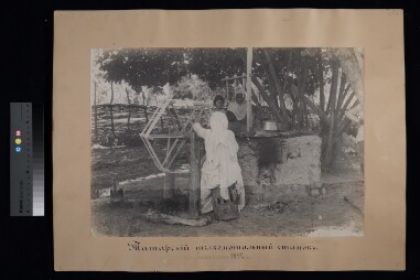 Tatars squeezing silk skein after dyeing
