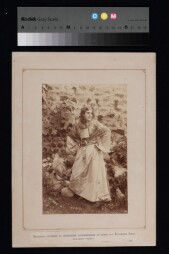 A photograph depicting a standing woman in the national costume. Extent: 1 photograph. Size and dimensions of original material: Height 20cm, width…